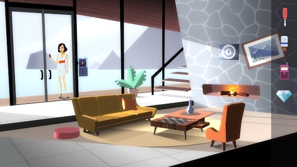 On a aussi beaucoup aimé l’ambiance du jeu. Les créateurices aiment clairement les vieux James Bond, car on retrouve une esthétique qui fleure pas mal les années 1960. Ruby est une méchante dans la pure tradition de la franchise, avec des plans diaboliques, un rire démoniaque et elle semble tirer plaisir à mettre l’Agent A dans la sauce. Son repaire est évidemment un mélange de villa bourgeoise et de salles de contrôle cachée et bourrée d’écrans mystérieux et boutons de toutes sortes. La musique participe aussi beaucoup à cette identification, en utilisant parfaitement les codes sonores de l’univers bondien. De ce point de vue, ce fut un vrai régal.